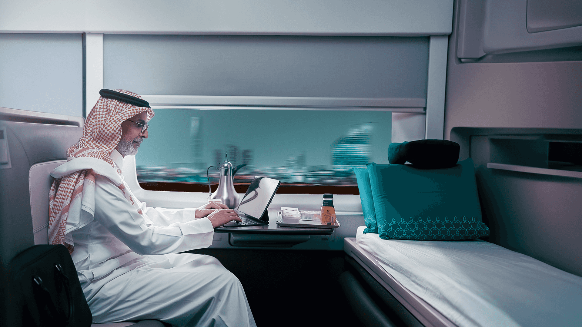 لا حاجة للانقطاع عن العالم. قطاراتنا مزودة بطاولات ومنافذ شحن لكل مقعد،يمكنك البقاْءمتصلًا طوال رحلتك. اجعل من رحلتك مساحة للعمل أو الترفيه،بإمكانك إنجاز أعمالك أو مشاهدة ما تحب، أو التصفح من محطة لأخرى.