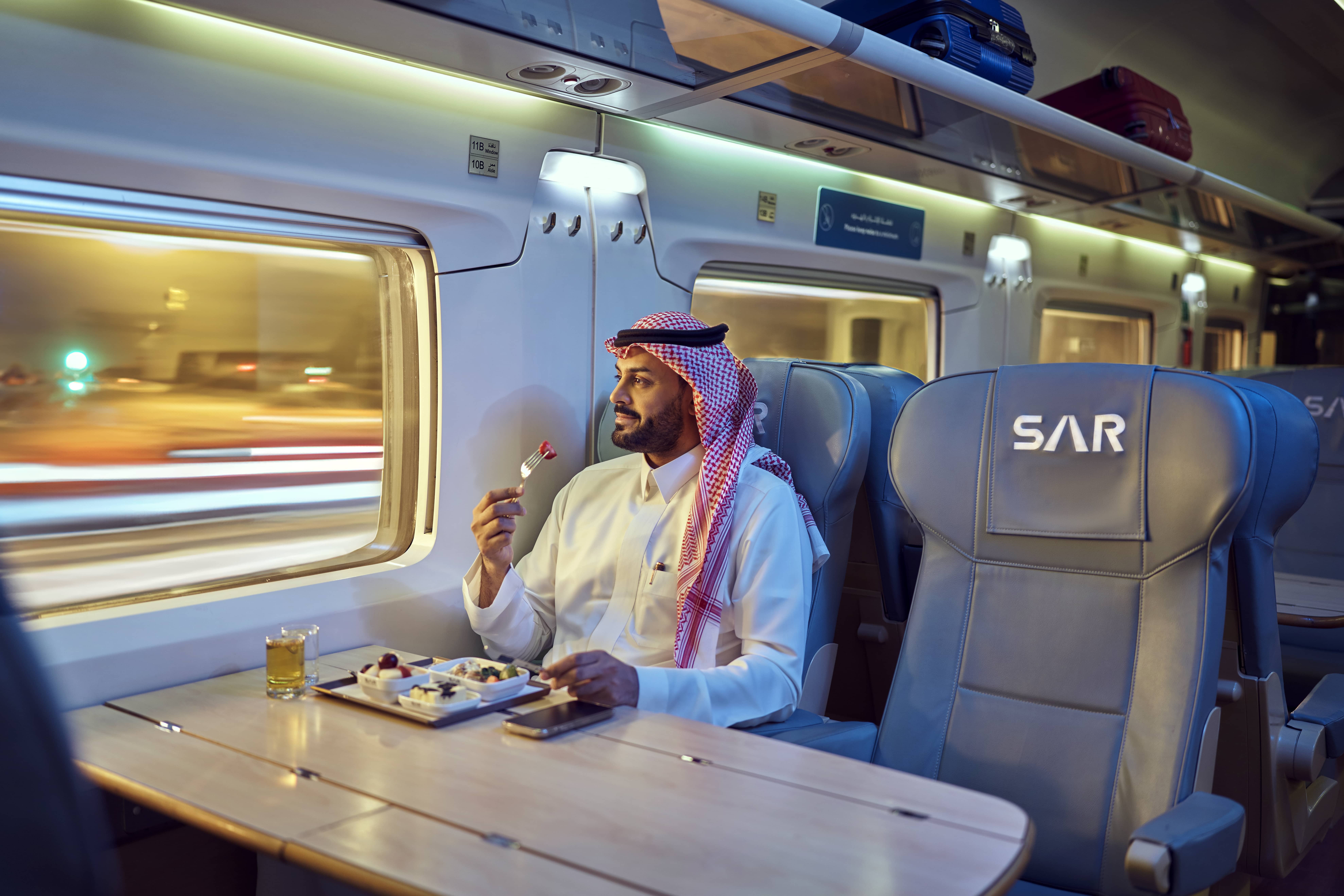 • Other Business Class amenities include a fast-track ticket check lane, priority boarding and access to the prayer area on board the train.
