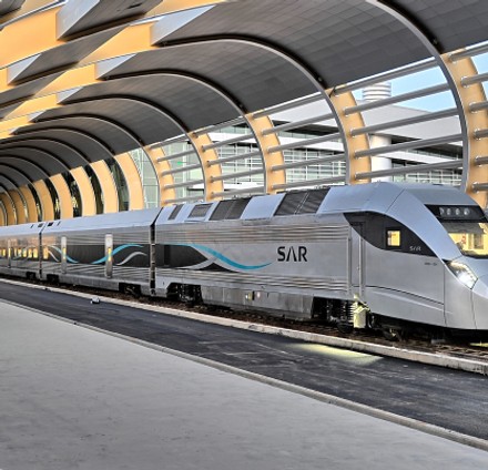 The Haramain High-Speed Railway is considered one of the 10 fastest electric trains in the world, with a speed of 300 km/h, using advanced signaling and communication systems. The project comprises 35 trains, each consisting of 13 carriages and 417 seats, connecting Mecca to Medina, and passing through three stations: Jeddah, King Abdulaziz International Airport, and King Abdullah Economic City in Rabigh. The Haramain High-Speed Railway is a key component of the development plan and the expansion program of the Saudi Arabia Railway Network.