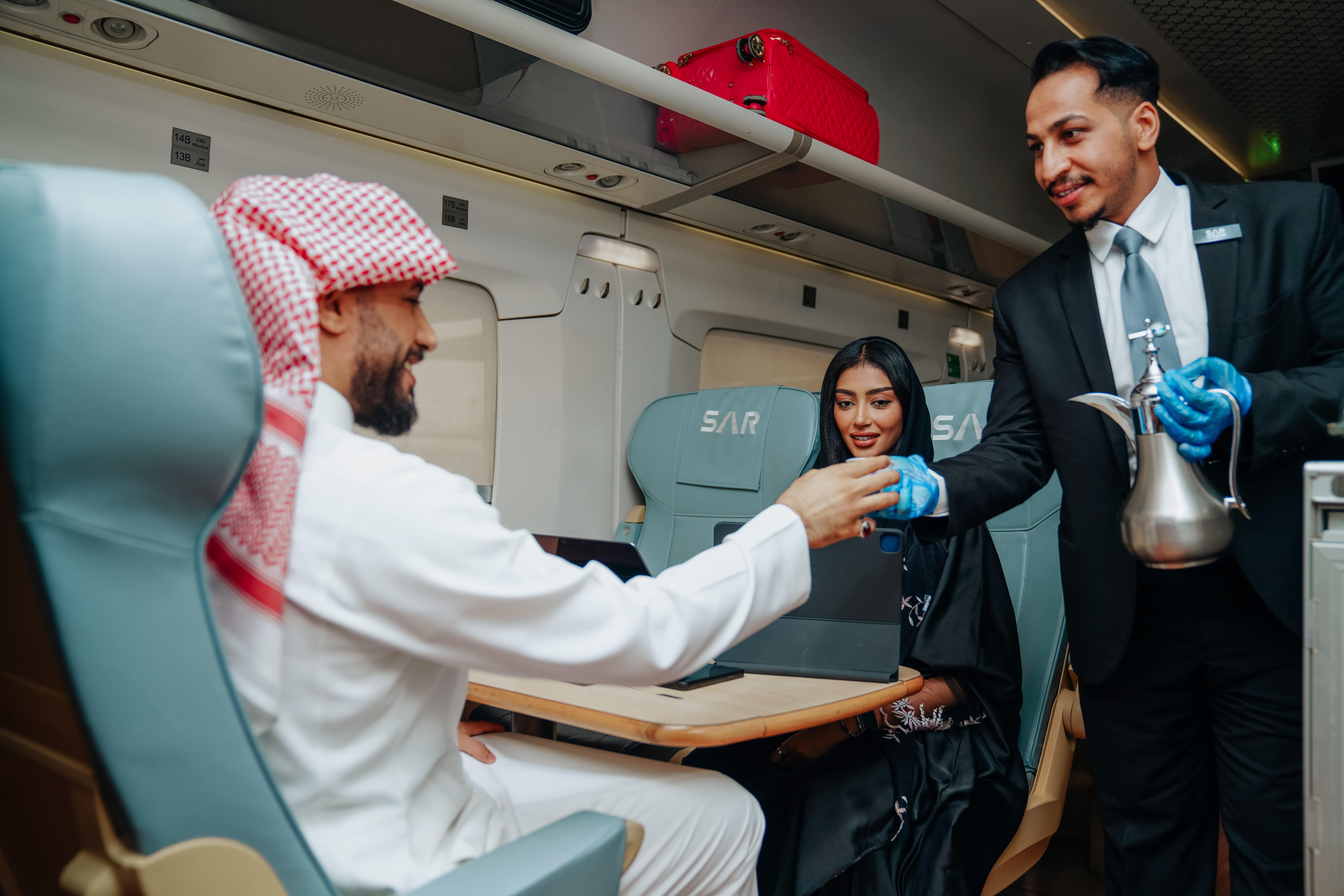 • تشمل درجة الأعمال على الميزات التالية، خدمة حصرية لشحن الأمتعة وخدمة المسار السريع وأولوية الصعود على متن القطار وإمكانية أداء الصلاة في المنطقة المخصصة للصلاة على درجة الأعمال.