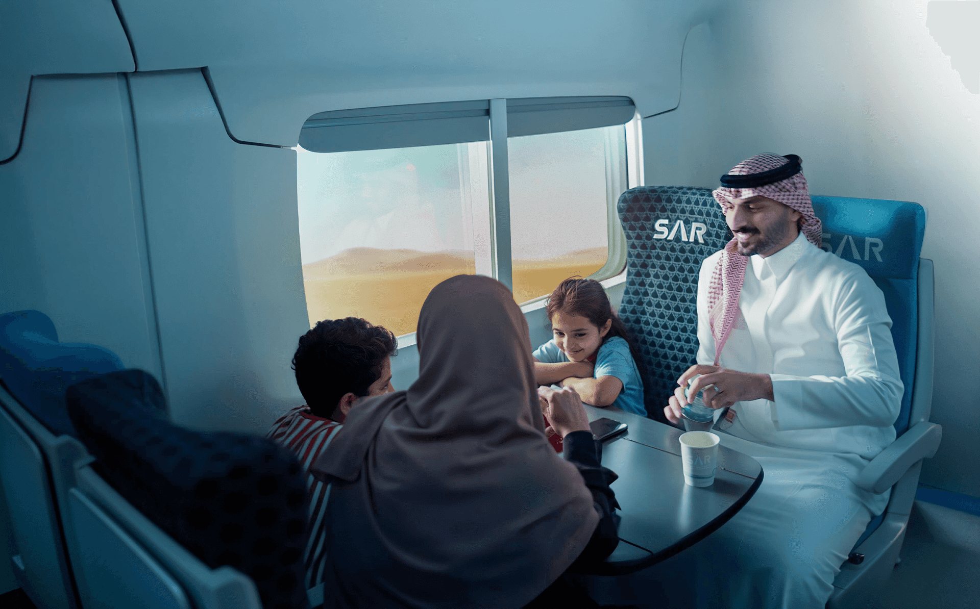 استمتع بمقاعد واسعة ومريحة في بيئة نظيفة وهادئة تمنحك لحظات راحة منذ لحظة صعودك للقطار. سواء كنت تسافر مع عائلتك أو أصدقائك، ستتمتع على متن قطارات «سار» بالمساحات الواسعة والأجواء الهادئة لتجربة سفر ممتعة من البداية حتى النهاية.
